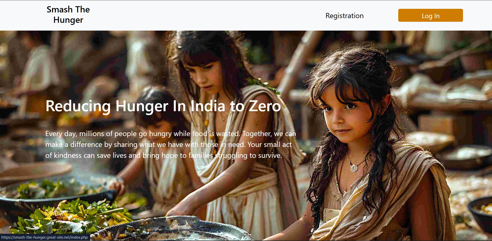 A social impact web application aimed at reducing food waste and addressing hunger by connecting donors with people in need. The platform streamlines food sharing, encourages community participation, and promotes sustainable solutions for a hunger-free society.